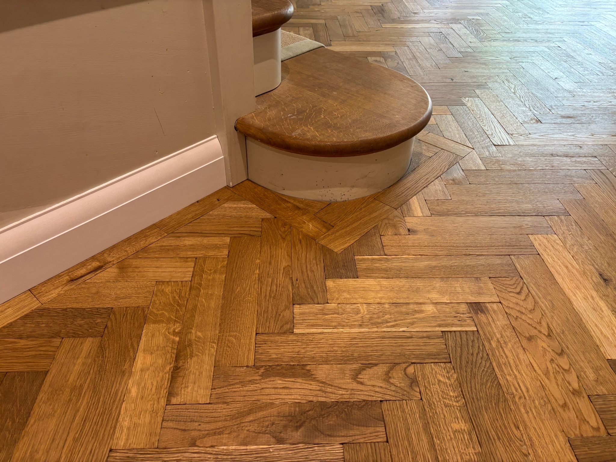 In Lymington, we completed a wood floor supply and fit project using tumbled and distressed smoked, oiled 10x60x300mm herringbone parquet wood flooring. This characterful floor was carefully laid to highlight the unique aged texture and rich tones of the smoked oak, creating a floor with warmth and timeless appeal. The result is a beautifully fitted parquet floor that blends traditional craft with a modern finish.